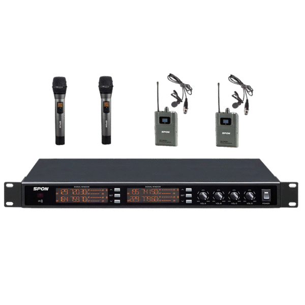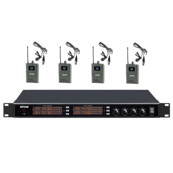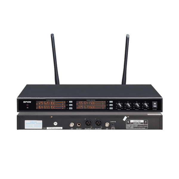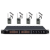 Operates in the 500–900 MHz UHF band for reliable signal transmission. Features four-channel reception, each with 100 selectable channels in 250 kHz steps, and independent ID codes to reduce interference. Supports up to 10 receivers and 40 transmitters working simultaneously, ideal for performances, conferences, and events.