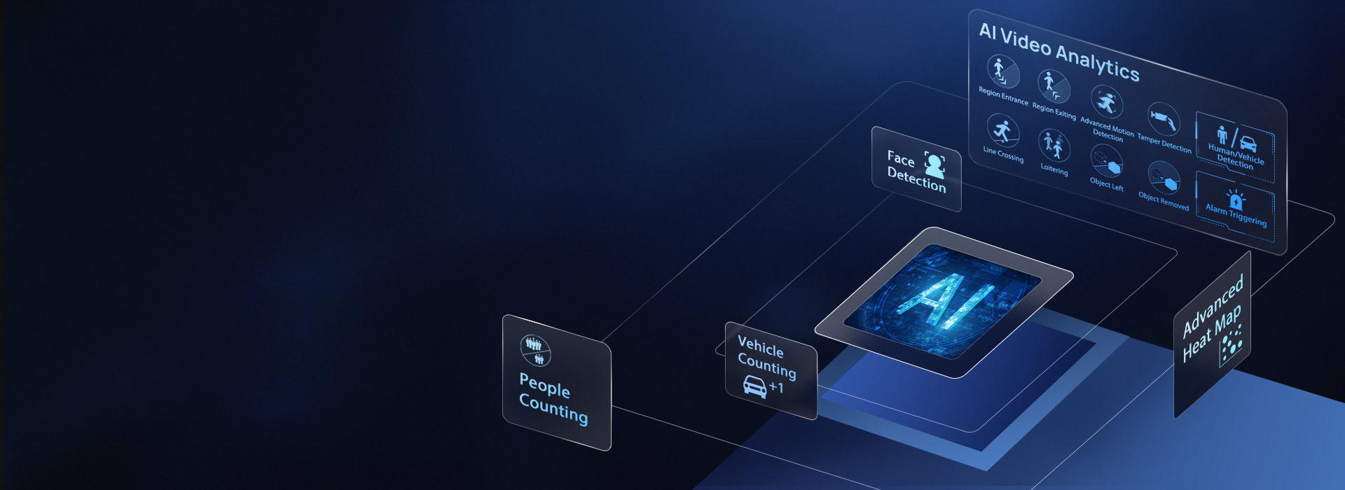 | Object Counting & Report | Count the number of objects crossing the line, optionally human and vehicle, Support regional people counting for up to 4 detection areas |