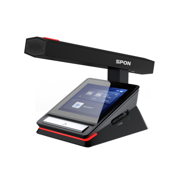This conference microphone enables meeting sign-in, voting, and agenda control with real-time result display. It features control over delegate mics and includes a high-quality 14mm super-cardioid gold-plated condenser mic with long pickup range. An independent XLR analog audio output provides reliable connection, and the system supports digital-analog dual backup for stable performance.