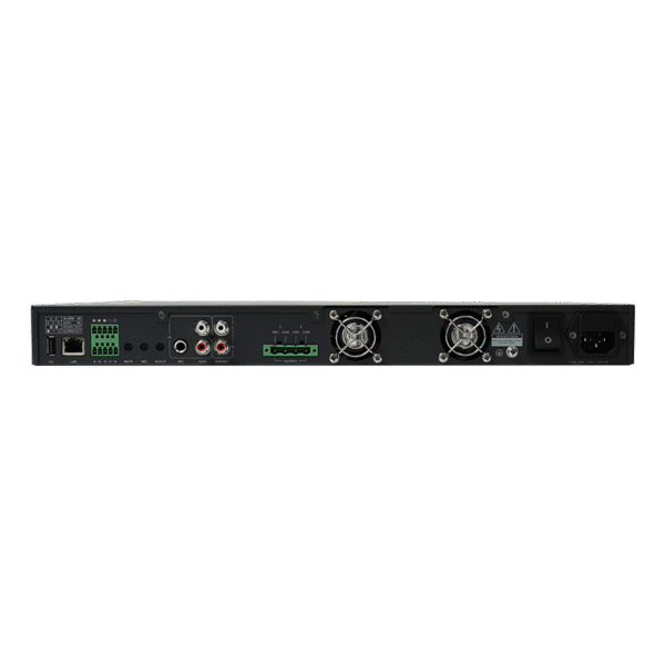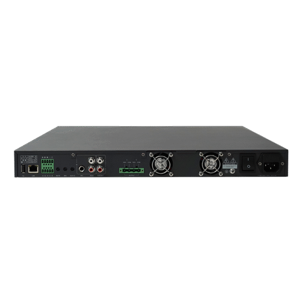 This 1U rack-mount IP Network Digital Power Amplifier features a sleek switch-style design that fits seamlessly into any networked audio system. Built with a simplified, user-friendly engineering design, it places status indicators on the front panel while moving power and volume controls to the rear—minimizing accidental misuse and reducing maintenance issues. Equipped with a high-efficiency Class D digital amplifier, it delivers 100V constant voltage output with over 90% efficiency.
