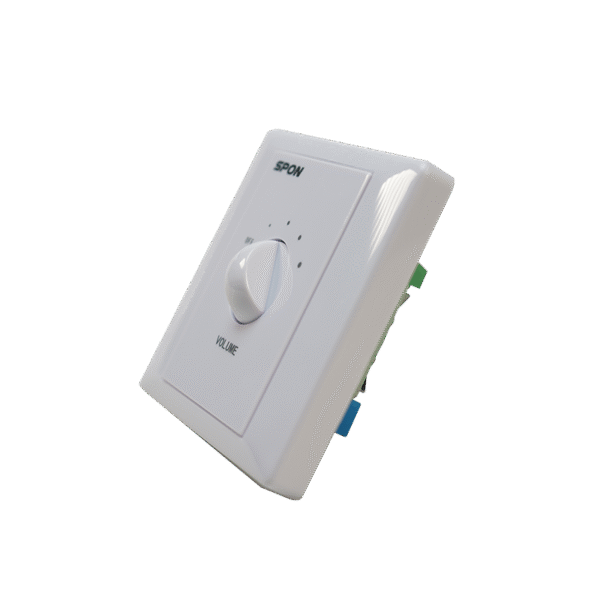 The volume controller features 4 adjustable levels, allowing users to set the audio output according to their needs with precision and ease. Once installed, it provides a uniform and coordinated appearance that blends harmoniously with the surrounding décor. Its straightforward control interface makes it easy for users to adjust volume without technical knowledge, making it suitable for offices, schools, hotels, and public buildings where clear and controlled audio management is required.