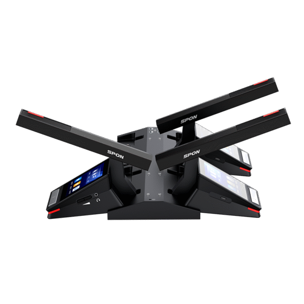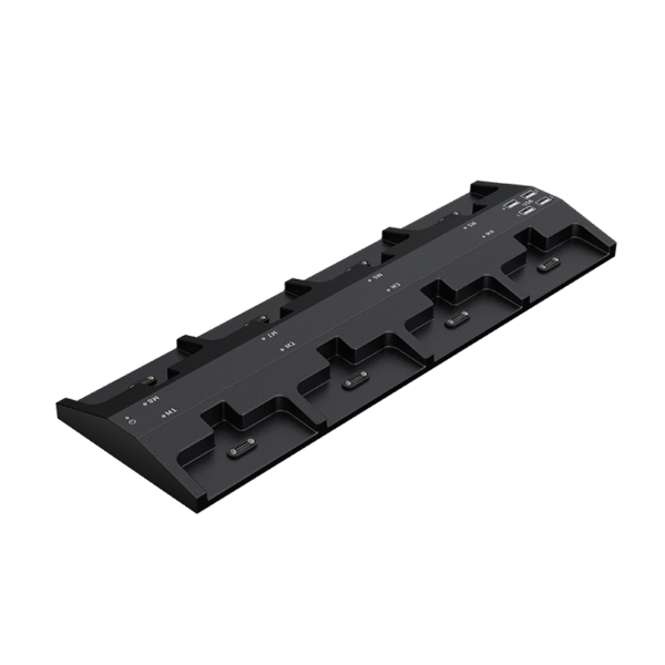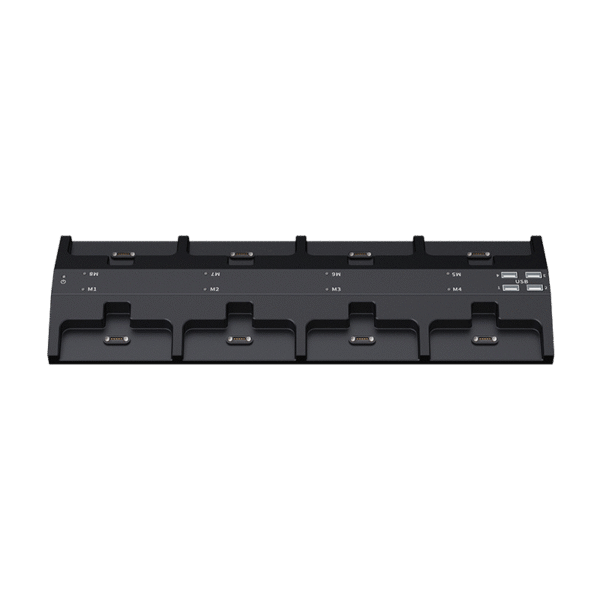 This wireless microphone charging station offers 8 magnetic charging ports for quick, snap-on charging at up to 13V/1A. It also includes 4 standard USB charging ports, each delivering 5V/1A. The compact design supports high-efficiency charging for multiple devices simultaneously, ideal for large-scale conference environments.